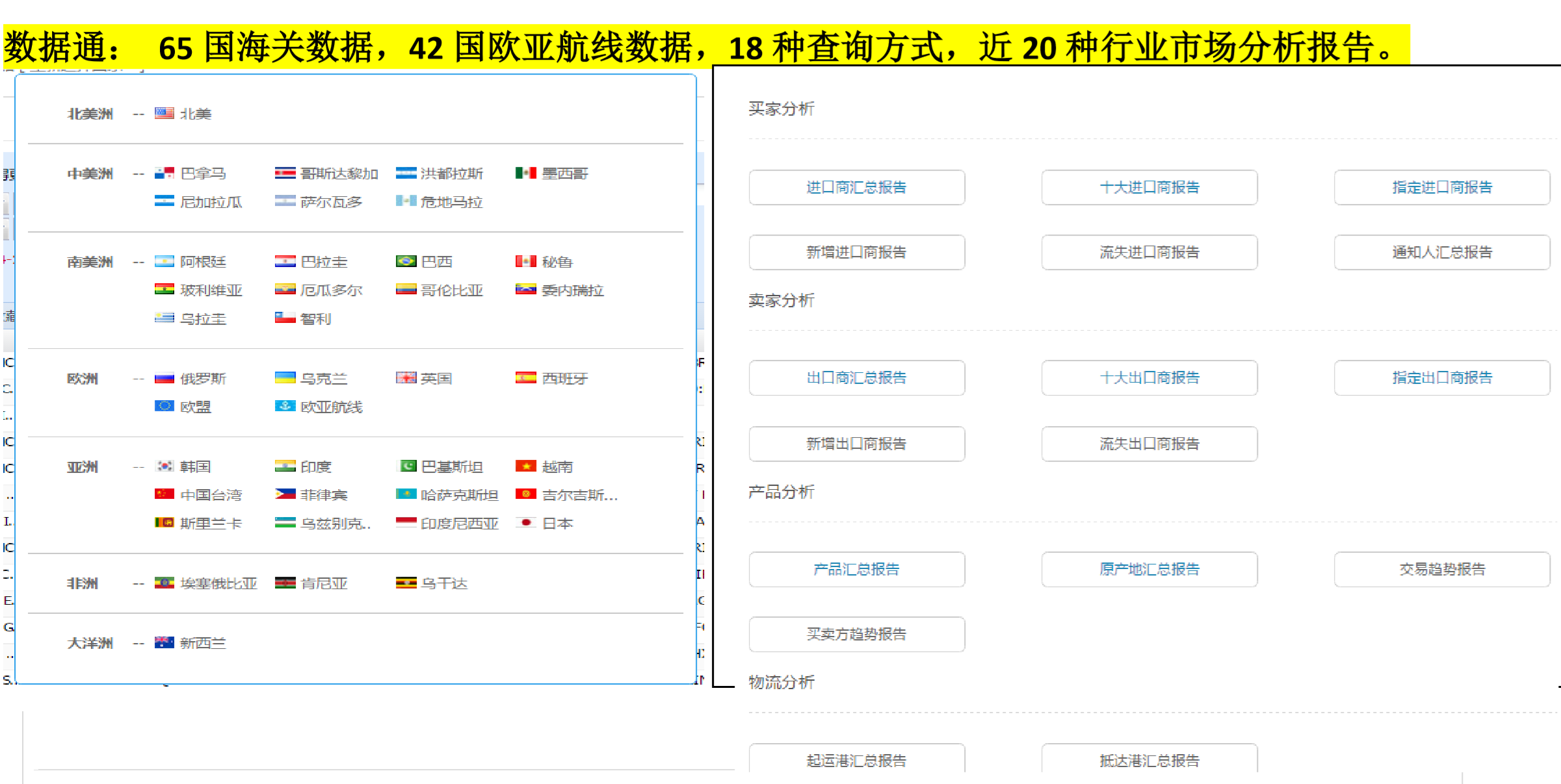PA视讯国际海关数据库,实时给予全球涵盖65国海关数据,42国欧亚航线数据,100+亿实时贸易数据,定位1.8亿全球企业信息,帮助您分析全球市场贸易趋势及分布,为您的产品快速、精准、科学地锁定热销国家和新兴市场。