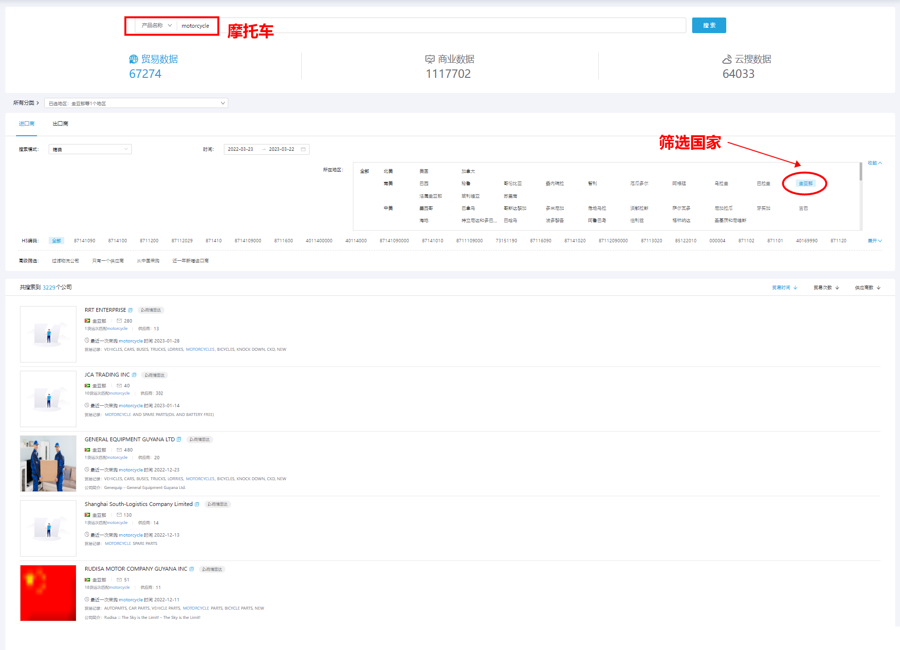 1、输入产品关键词:motorcycle,如图: